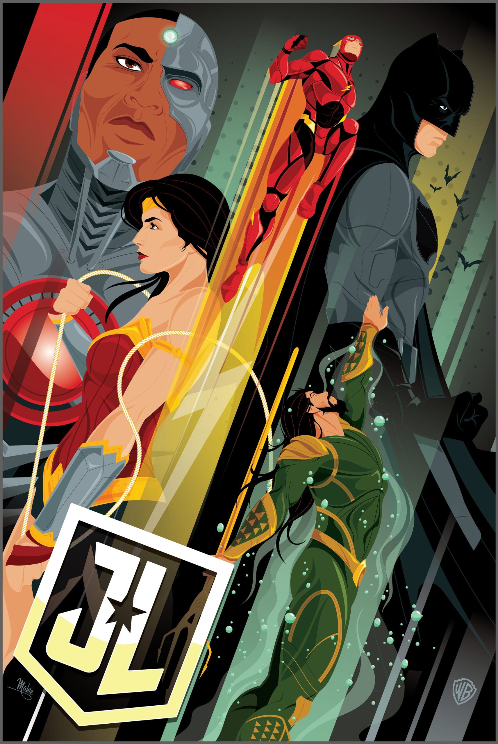 Justice League stars Ben Affleck as Bruce Wayne/Batman, Henry Cavill as Clark Kent/Superman and Gal Gadot as Diana Prince/Wonder Woman. Joining them are Jason Mamoa as Arthur Curry/Aquaman, Ray Fisher as Victor Stone/Cyborg, and Ezra Miller as Barry Allen/The Flash.