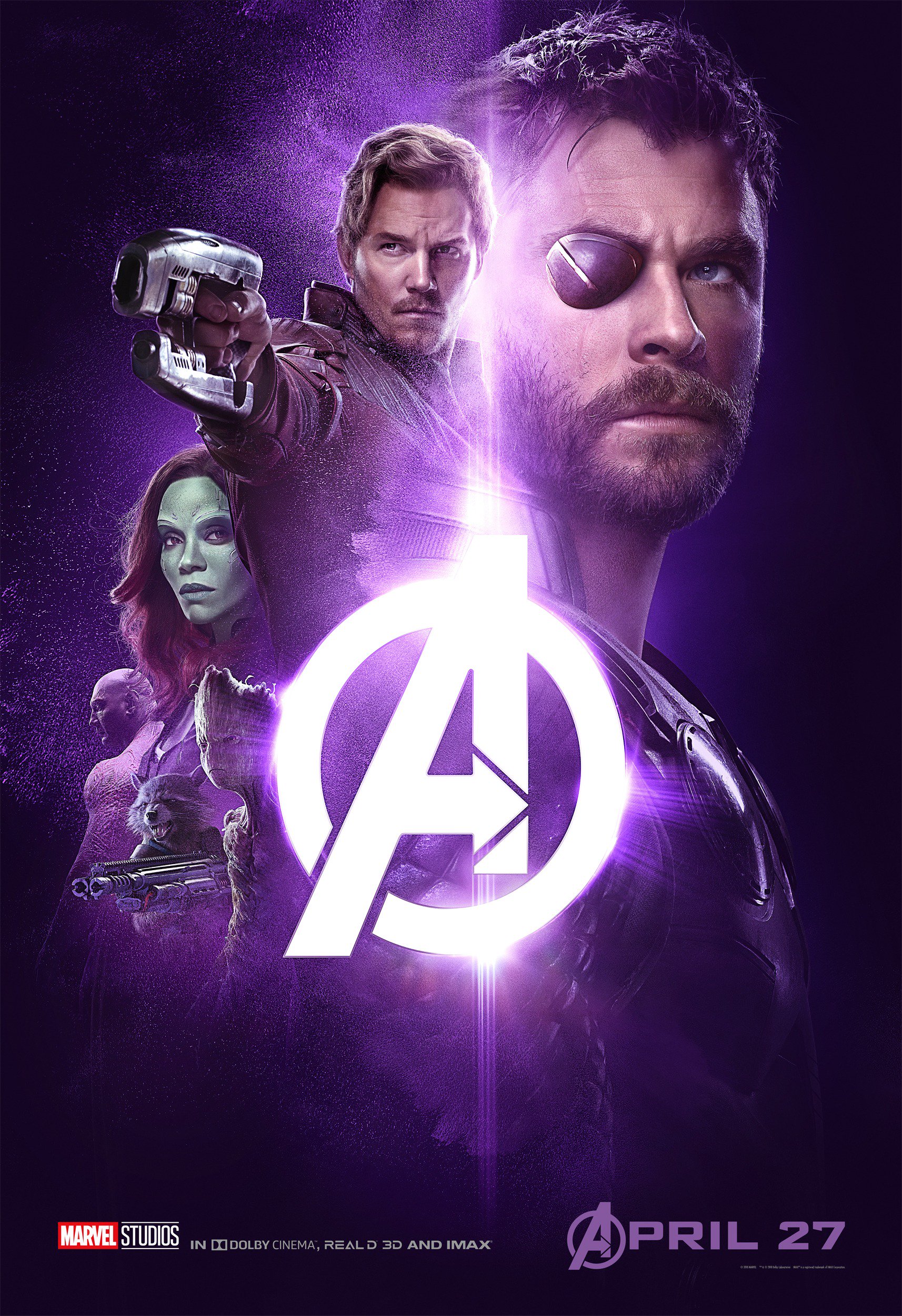Starring in Avengers: Infinity War is BAFTA Award nominee Chris Hemsworth as Thor, Academy Award nominee Josh Brolin as Thanos, Saturn Award Winner Chris Pratt as Star Lord / Peter Quill, Teen Choice Awards nominee Sebastian Stan as Bucky, four-time Golden Globe Award nominee Scarlett Johansson as Natasha Romanoff / Black Widow, Academy Award nominee Benedict Cumberbatch as Dr. Stephen Strange, Academy Award winner Brie Larson as Carol Danvers / Captain Marvel, ALMA Award winner Zoe Saldana as Gamora, Empire Award winner Karen Gillan as Nebula, two-time Academy Award nominee Jeremy Renner as Clint Barton / Hawkeye, two-time Saturn Award nominee Chris Evans as Steve Rogers / Captain America, BAFTA Awards nominee Elizabeth Olsen as Wanda Maximoff / Scarlet, four-time Academy Award nominee Bradley Cooper as Rocket Raccoon, Screen Actors Guild Awards nominee Vin Diesel as Groot, Academy Award nominee Samuel L. Jackson as Nick Fury, Screen Actors Guild Awards nominee Paul Rudd as Scott Lang / Ant-Man, British Independent Film Awards nominee Benedict Wong as Wong, Action on Film Award winner Dave Bautista as Drax, BAFTA Film Award nominee Paul Bettany as Vision, Santa Barbara International Film Festival Virtuoso Award winner Chadwick Boseman as T’Challa / Black Panther, three-time Academy Award nominee Mark Ruffalo as Bruce Banner / The Hulk, and two-time Academy Award nominee Robert Downey Jr. as Tony Stark / Iron Man.