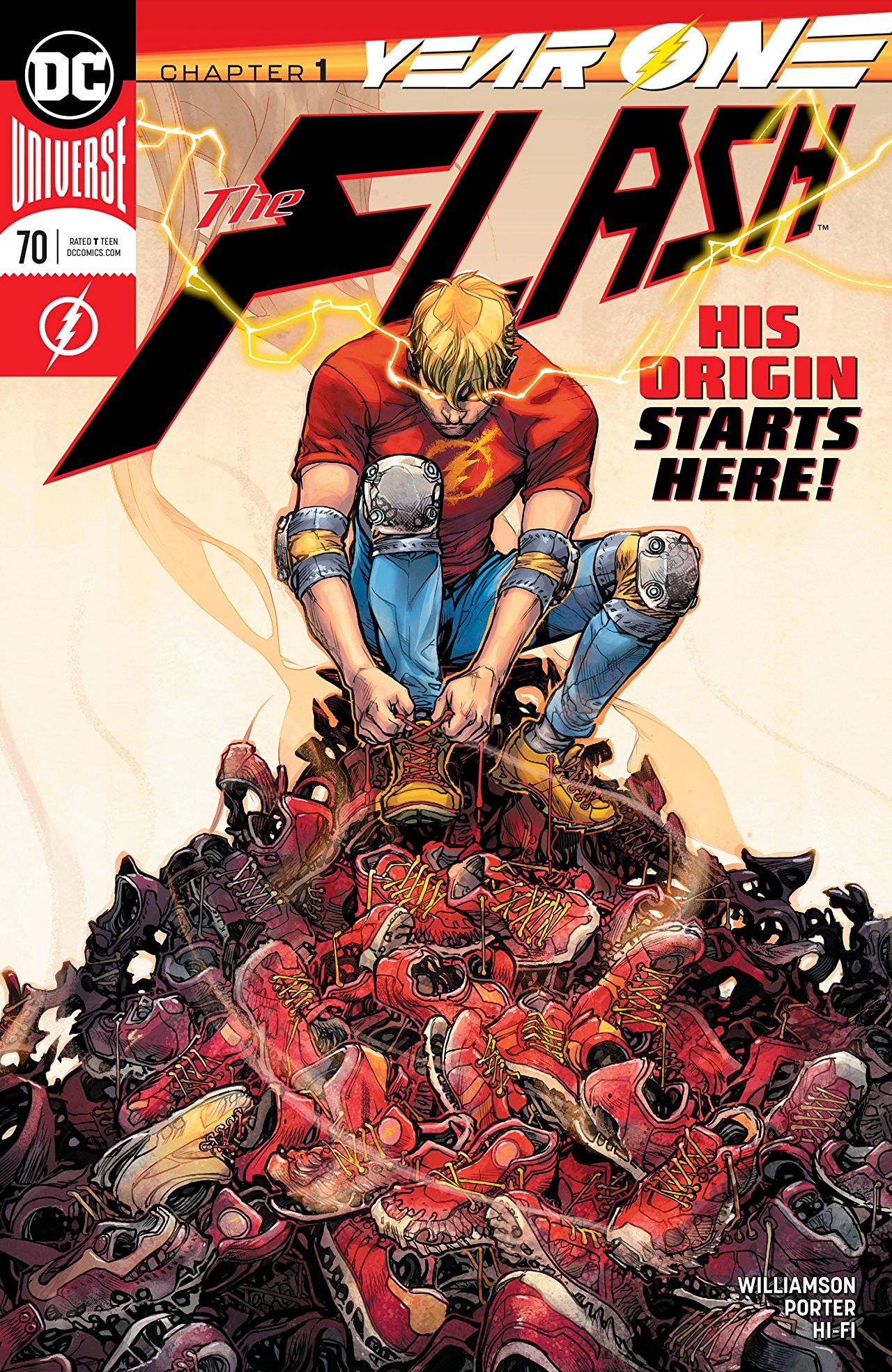 The Flash #70 is written by Joshua Williamson with art by Howard Porter, colours are by Hi-Fi who also worked on the cover with Porter.