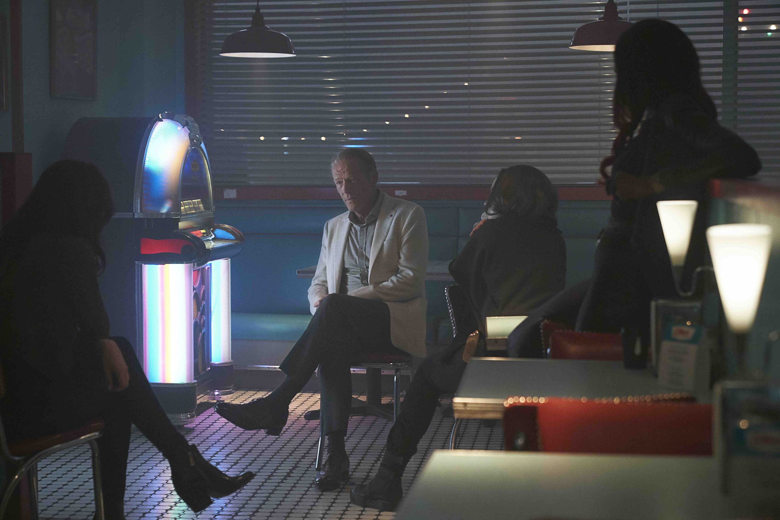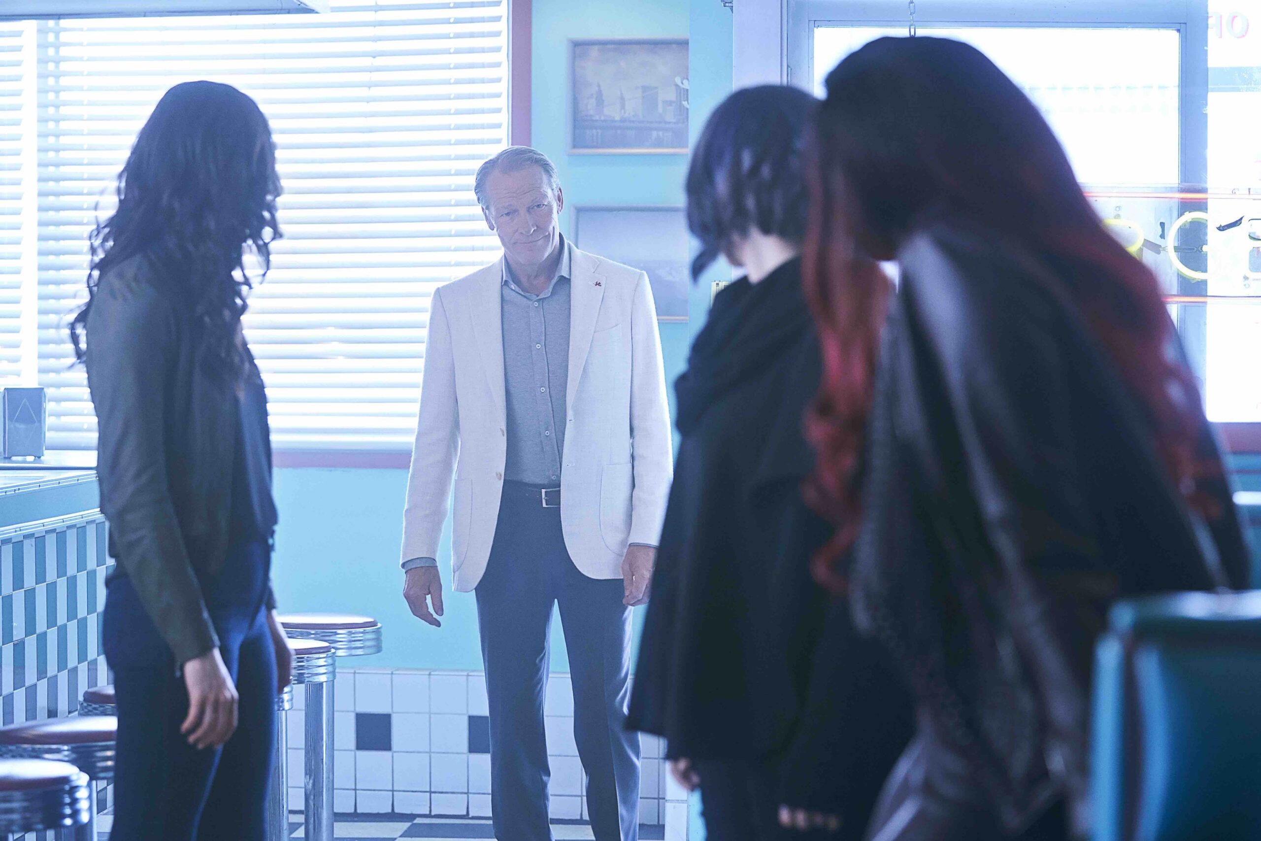 This week Iain Glenn returns to Titans for another guest spot as Bruce Wayne. From the looks of this new preview gallery for the episode “E.L._.O.” he’ll be advising the lady Titans on how to save Conner, Gar and Dick from their current predicaments.