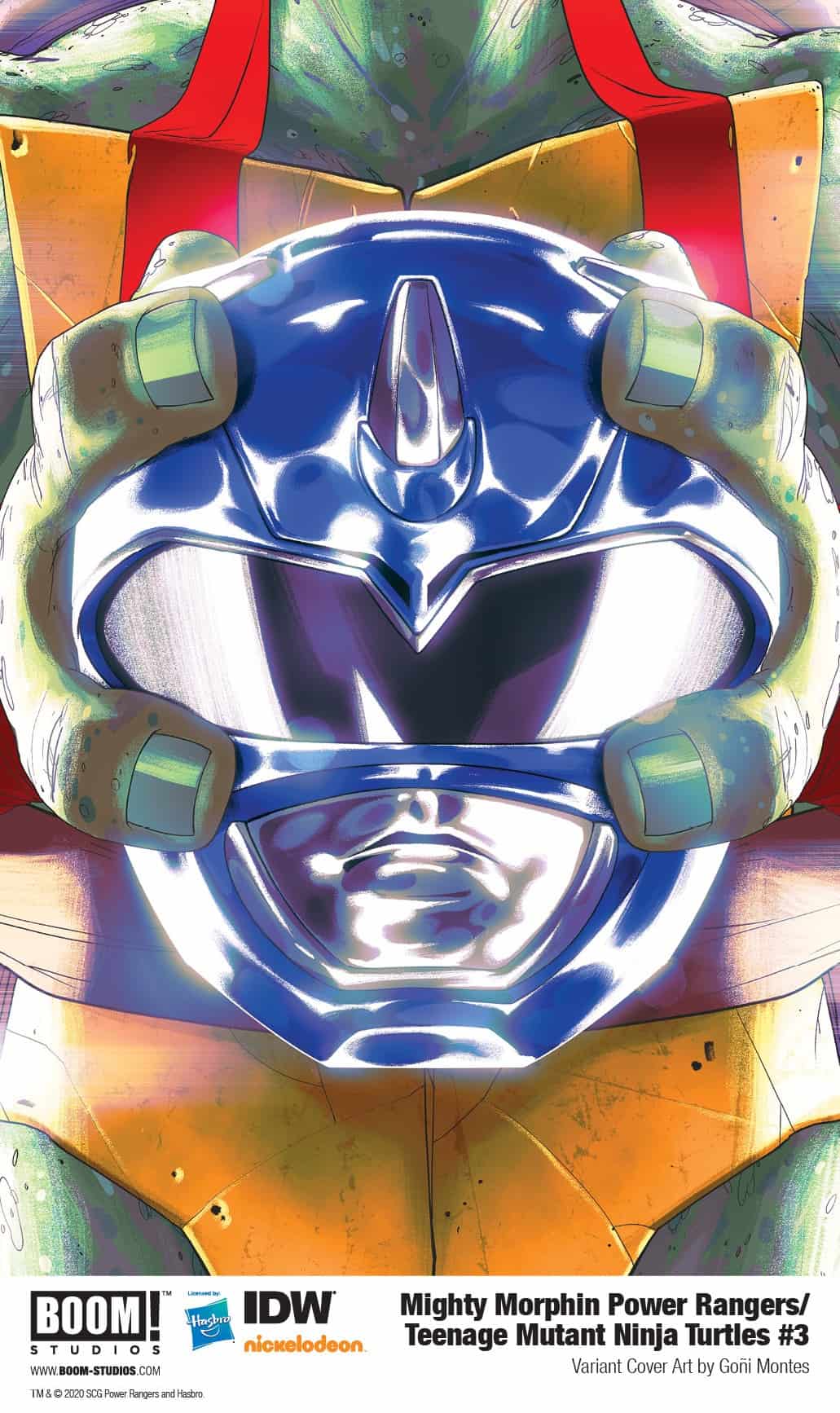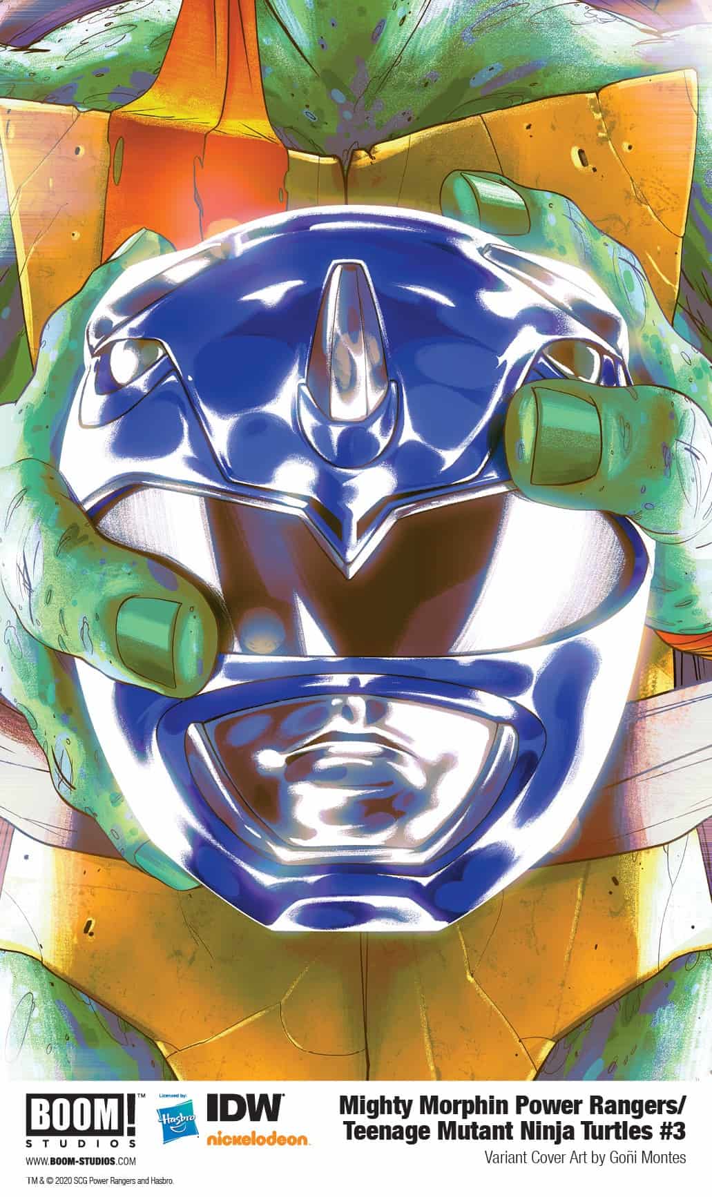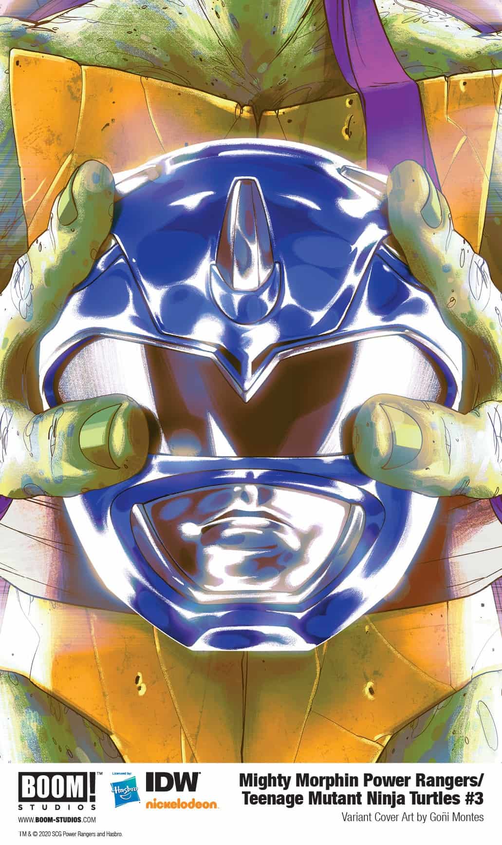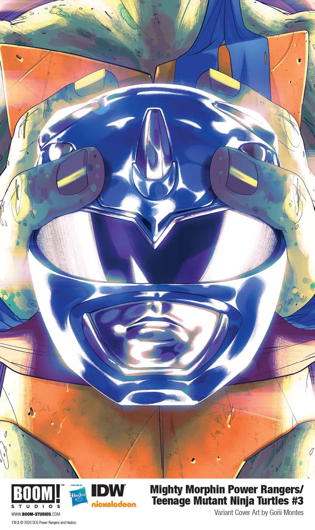 MIGHTY MORPHIN POWER RANGERS/TEENAGE MUTANT NINJA TURTLES #3 (OF 5) features a main cover by Dan Mora (Buffy the Vampire Slayer, Once & Future), with Turtle Ranger Helmet variant covers by Goñi Montes (Mighty Morphin Power Rangers) and more!