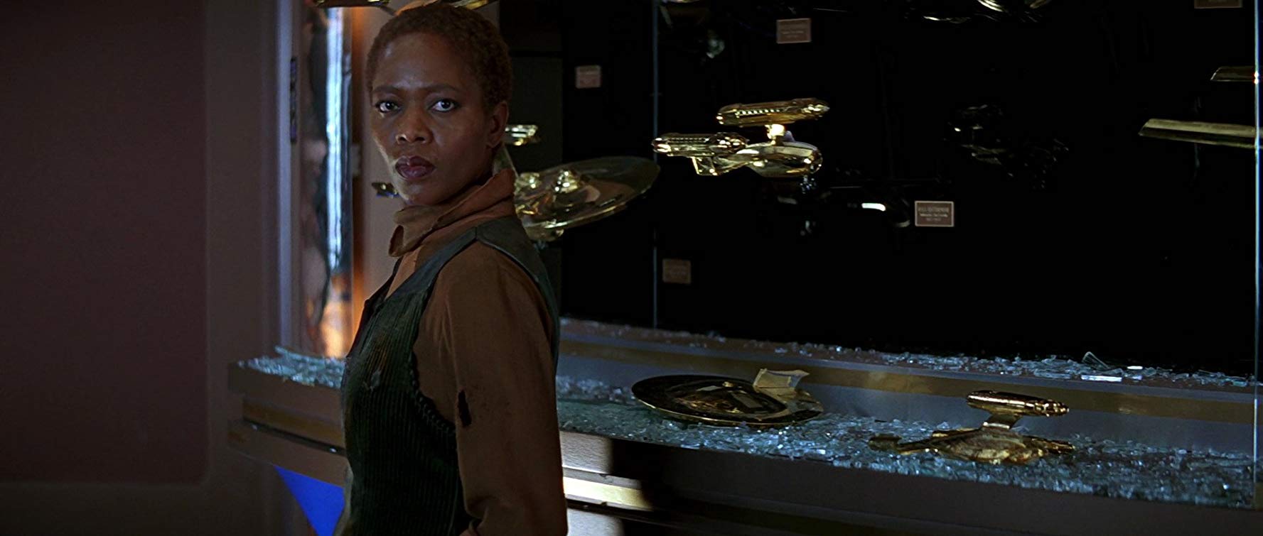 Much of First Contact pairs Picard with the brilliantly written Lily Sloane played by Alfre Woodard. In a particularly poignant scene Picard, locked in the observation lounge looking for a weapon to defeat the Borg, is confronted by Lily. As she tries to persuade Picard to set the self-destruct mode and destroy the Borg for good he loses his temper, shattering the display of model Enterprise ships on the back wall.