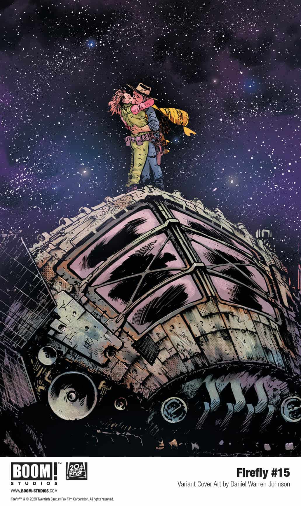 Firefly #15 features a main cover by Marc Aspinall (Buffy the Vampire Slayer), along with variant covers from artists George Kamboudais (Firefly: The Outlaw Ma Reynolds), Daniel Warren Johnson (Murder Falcon), and more.