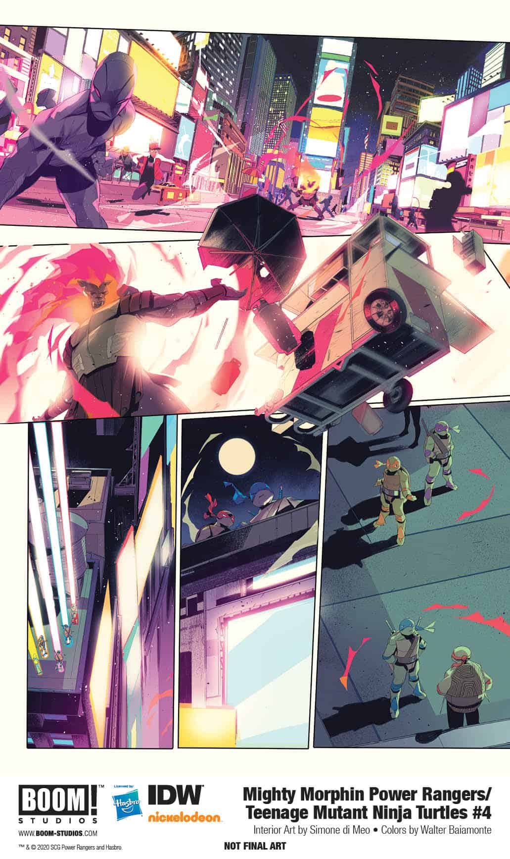 Print copies of MIGHTY MORPHIN POWER RANGERS/TEENAGE MUTANT NINJA TURTLES #4 will be available on March 18, 2020 at local comic book shops (use comicshoplocator.com to find the one nearest you) or at the BOOM! Studios webstore. Digital copies can be purchased from content providers like comiXology, iBooks, Google Play, and Madefire.