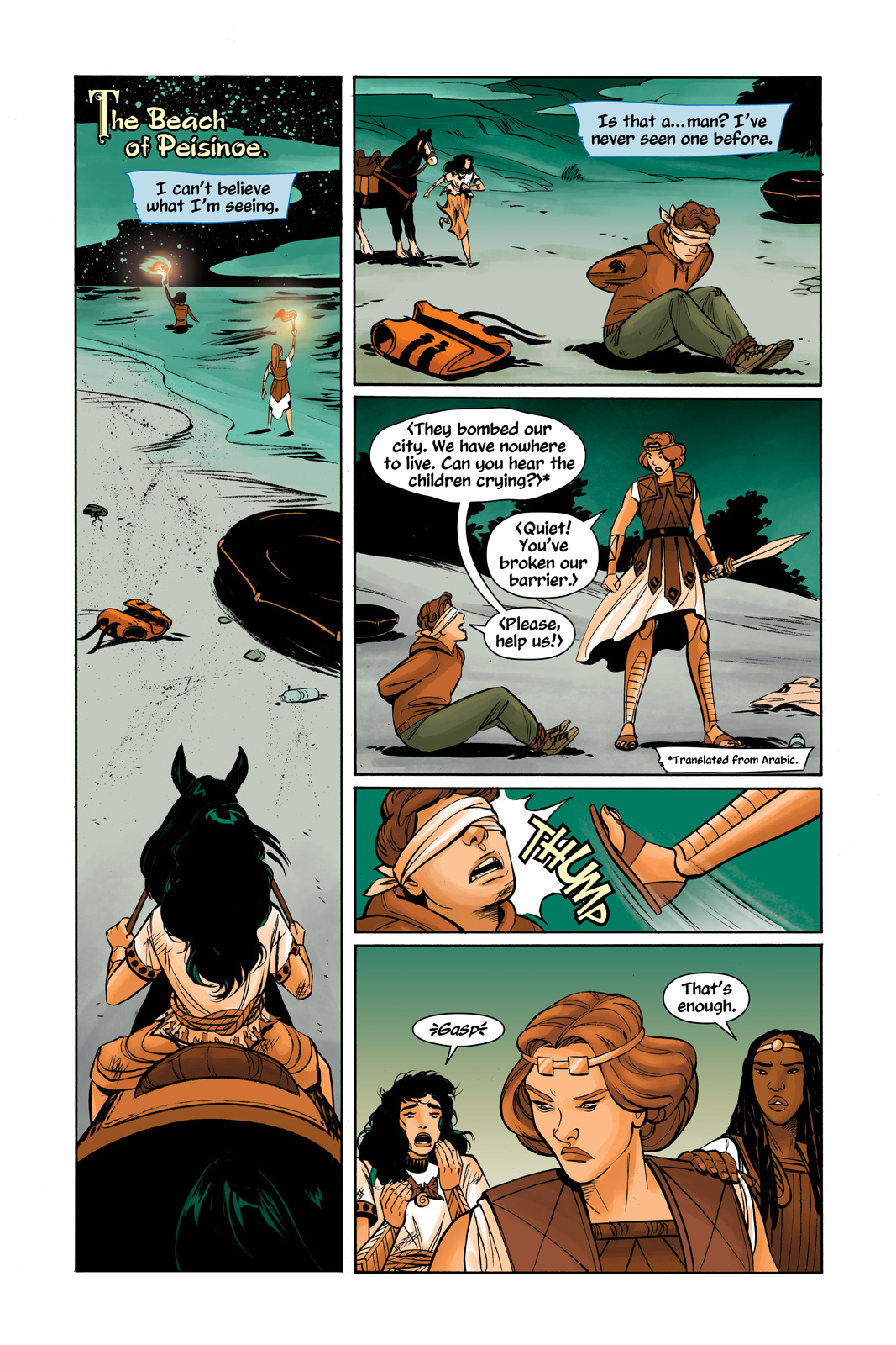 Princess Diana of Themyscira believes that her 16th birthday will be one of new beginnings—namely, acceptance into the warrior tribe of the Amazons. But her birthday celebrations are cut short when rafts carrying refugees break through the barrier that separates her island home from the outside world. When Diana defies the Amazons to try to bring the outsiders to safety, she finds herself swept away by the stormy sea. Cut off from everything she’s ever known, Diana herself becomes a refugee in an unfamiliar land.