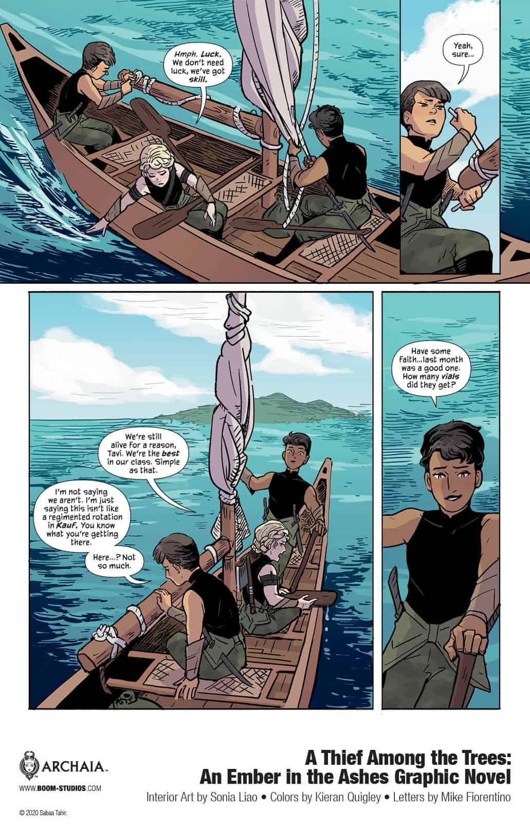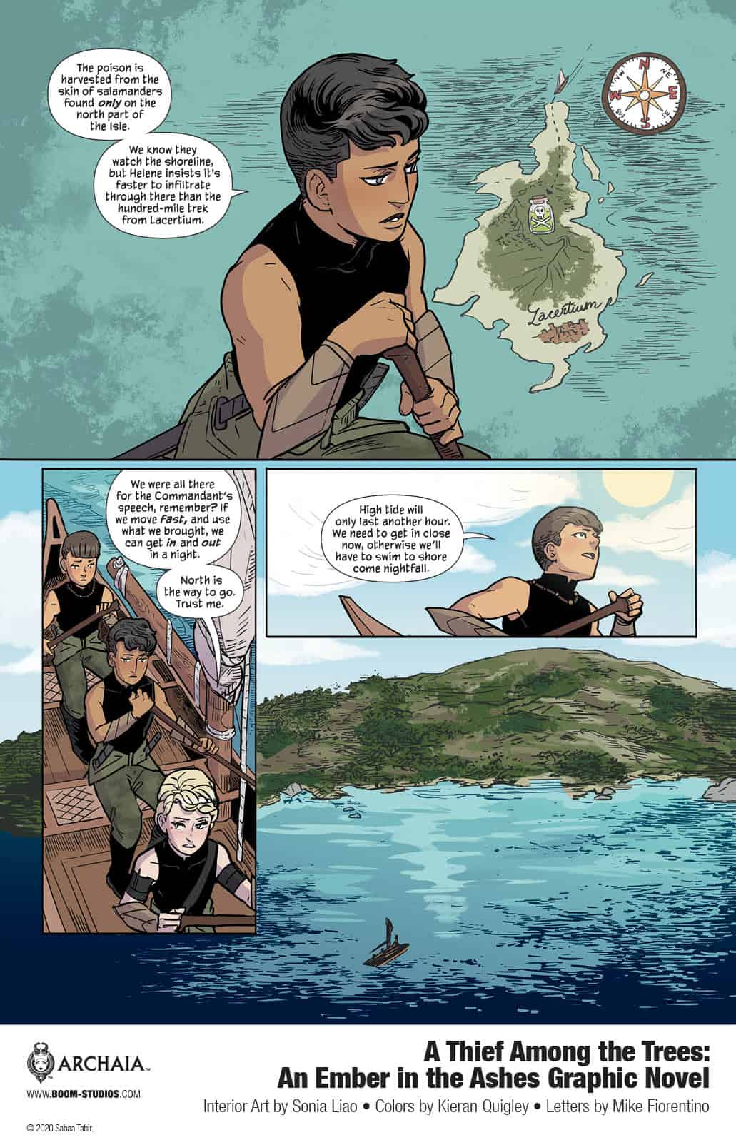 BOOM! Studios is proud to reveal a brand new look at A Thief Among The Trees: An Ember In The Ashes, an official prequel to the New York Times bestselling series of novels from creator Sabaa Tahir, writer Nicole Andelfinger (Jim Henson’s The Dark Crystal:Age of Resistance) and artist Sonia Liao (Kulipari: Heritage). A Thief Among The Trees will be the first graphic novel in a three volume prequel series that will explore the pasts of beloved An Ember in the Ashes series characters.