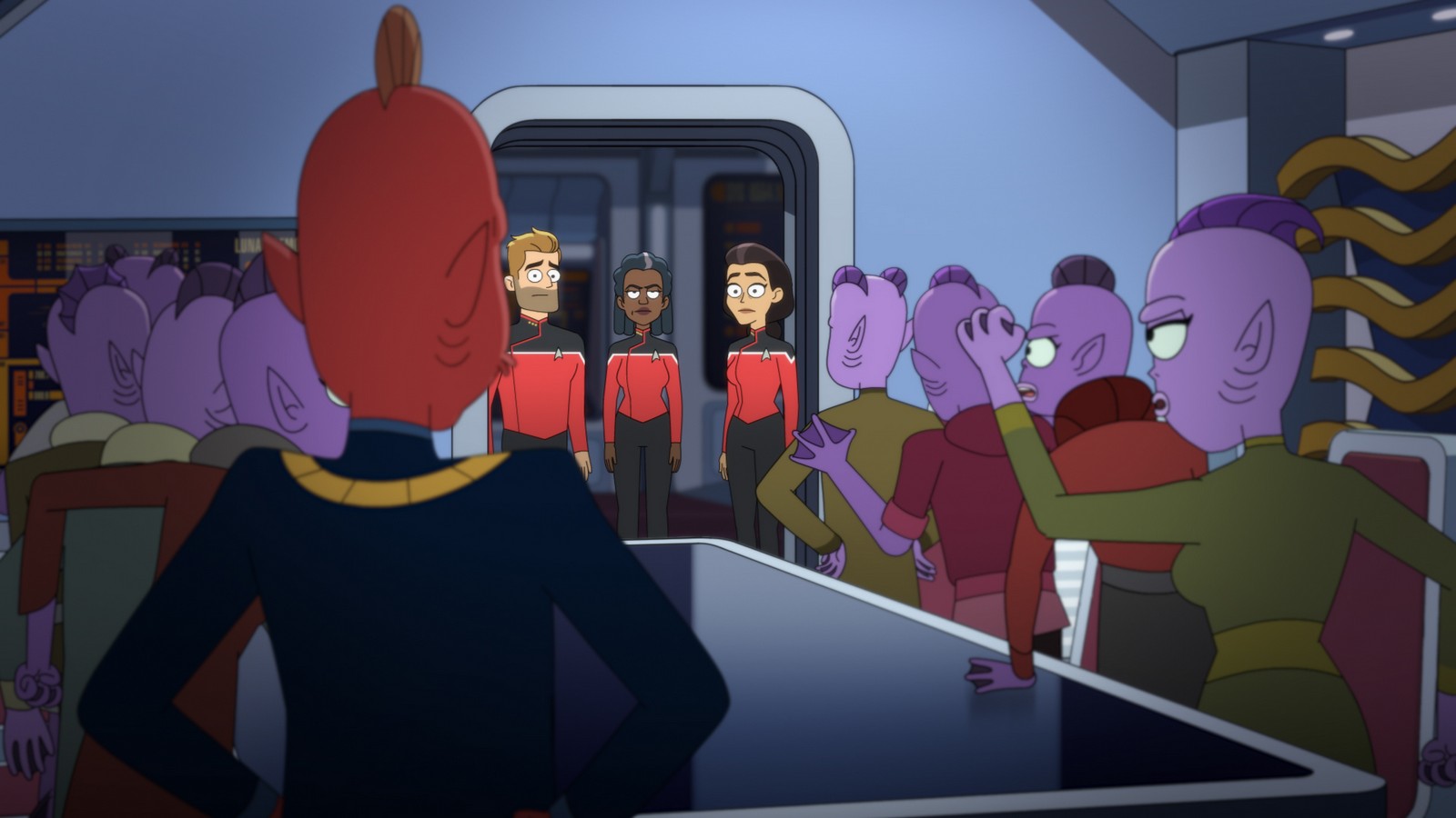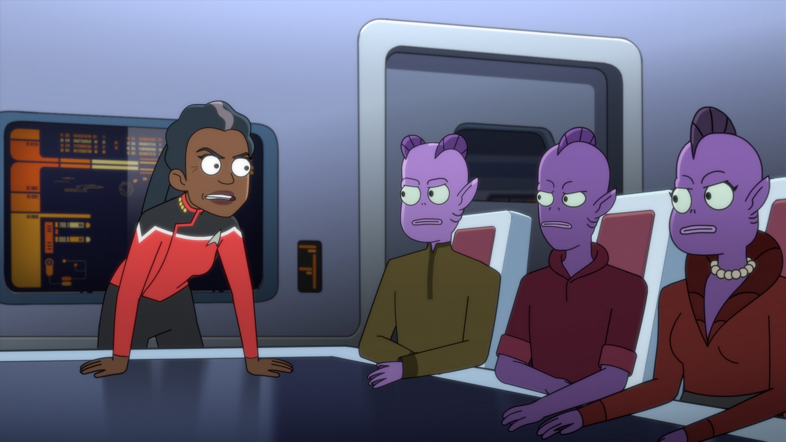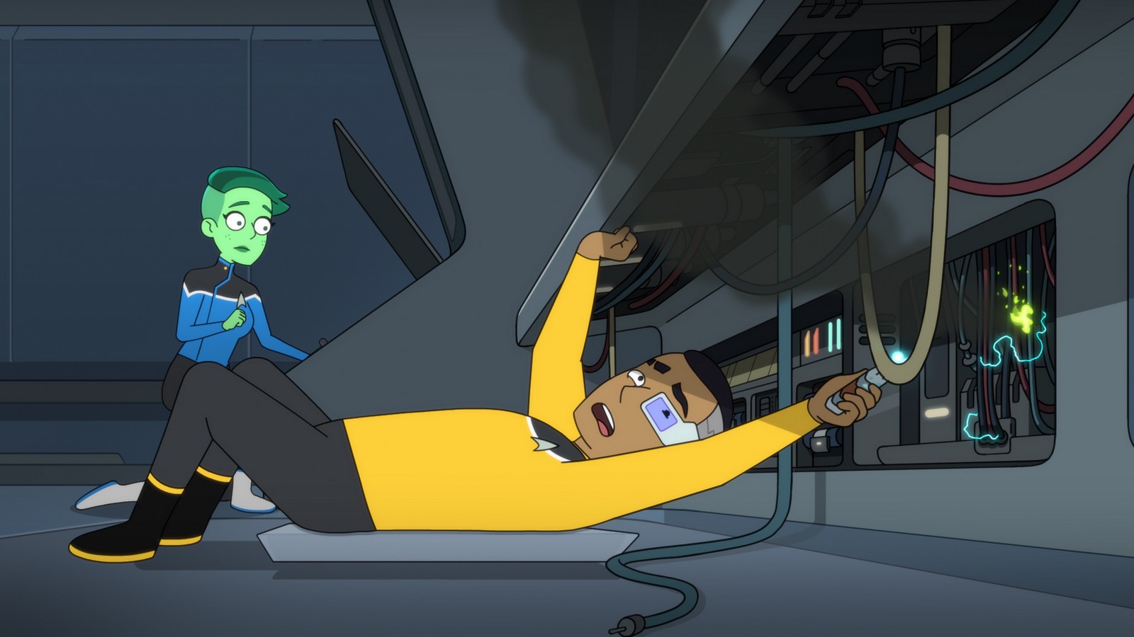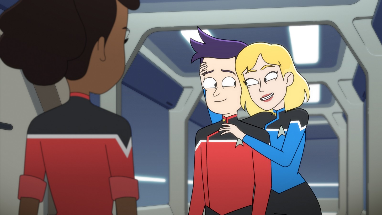 CBS All Access has releases a number of images from today’s brand new episode of Star Trek: Lower Decks. “Cupid’s Errant Arrow” will introduce a love interest for Jack Quaid’s Boimler but it won’t sit well with Tawny Newsome’s Ensign Mariner.