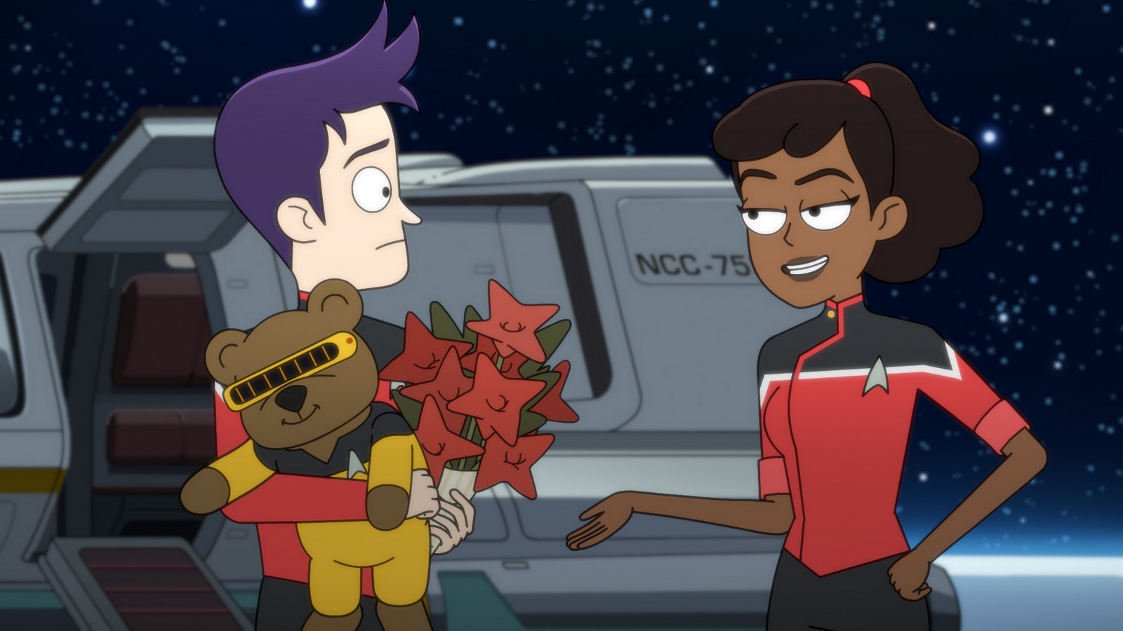 Tendi and Rutherford grow jealous of a bigger starship’s gear.