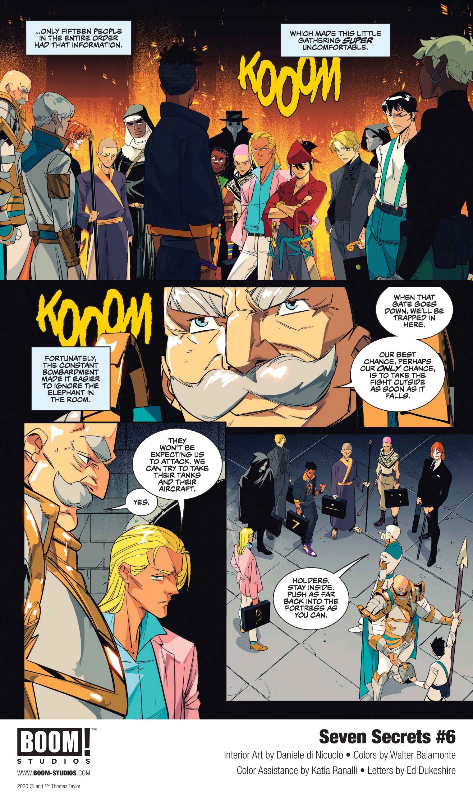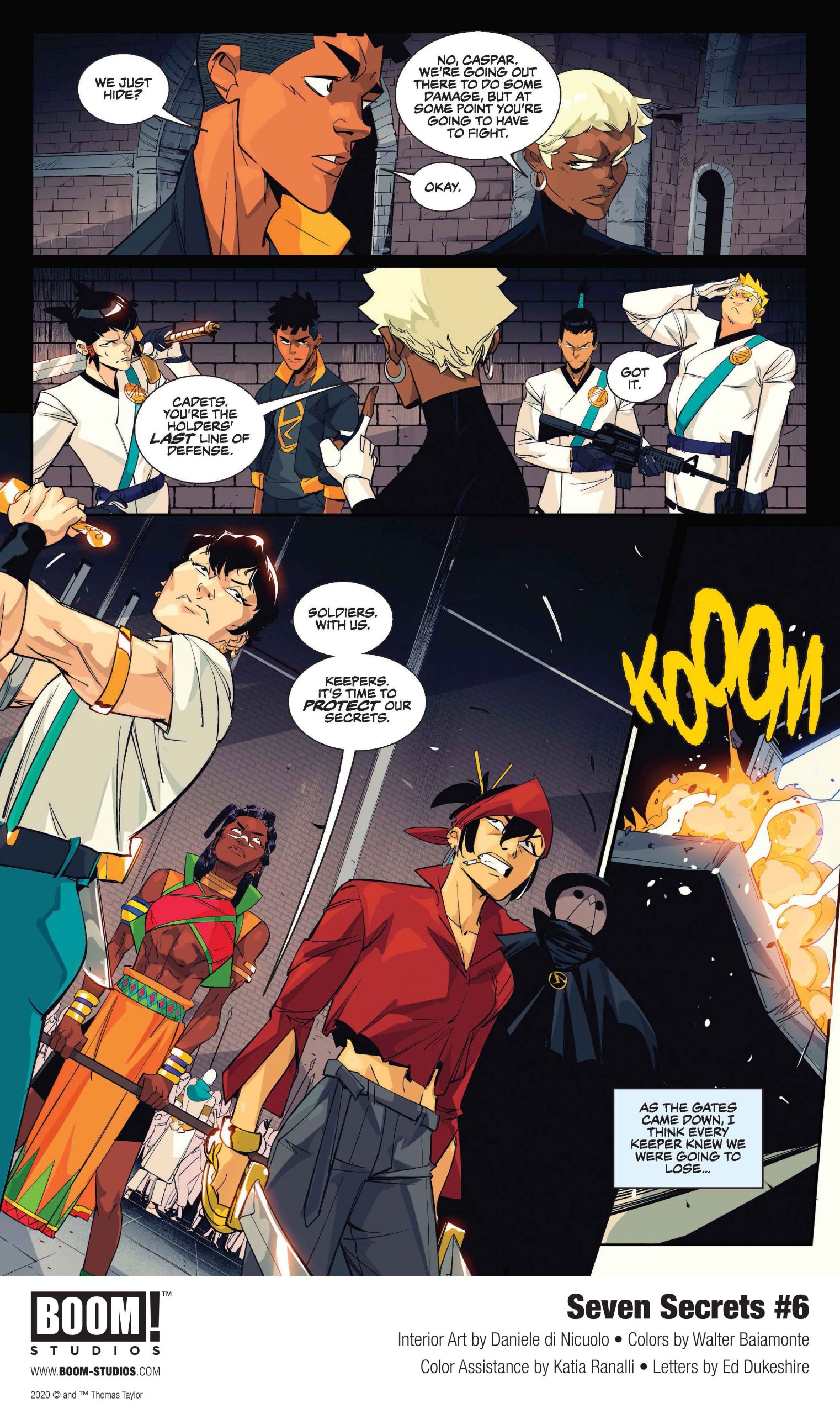 revealed a first look at Seven Secrets #6, the latest issue of the highly praised new original comic book series from New York Times bestselling author Tom Taylor (DCeased), artist Daniele Di Nicuolo (Mighty Morphin Power Rangers), colorist Walter Baiamonte, and letterer Ed Dukeshire, introducing readers to seven powerful secrets—words, wonders, weapons, and worse—with the power to change the world.