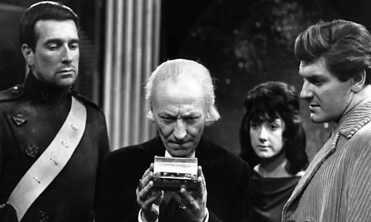 ‘The Nightmare Begins’ (episode one) follows directly from the previous serial, with the Doctor (William Hartnell), an injured Steven (Peter Purves), and new companion Katarina (Adrienne Hill) leaving Troy in the TARDIS. Vicki (Maureen O’Brien) has remained in this time after falling in love with Troilus, perhaps unknowingly avoiding the danger ahead! That serial ended with the TARDIS dematerialising, and the Doctor looking for somewhere to go to get help for Steven’s injuries…